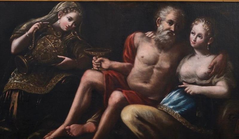 La scena rappresenta Lot con le figlie dopo la distruzione di Sodoma. Secondo il racconto della Genesi, le due giovani credono di essere rimaste sole al mondo, senza futuro e senza possibilità di continuità. È da questa convinzione che nasce la decisione: fanno bere il padre fino a stordirlo, lo portano a perdere lucidità e poi si avvicinano.