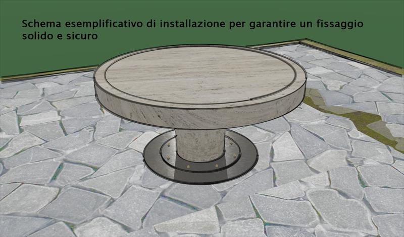 both carved from solid blocks of stone: the cylindrical base and the large upper wheel, now serving as a tabletop.