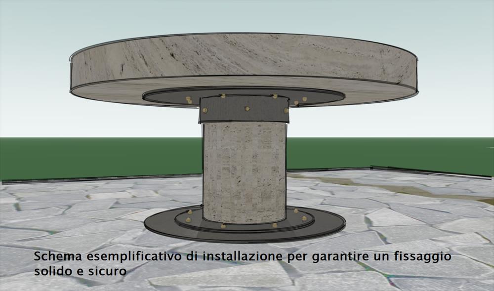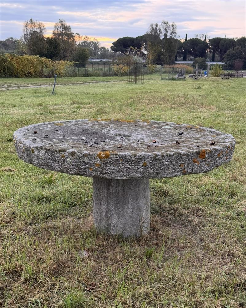 Tavolo in pietra realizzato riutilizzando con sapienza due elementi provenienti da una macina del Seicento